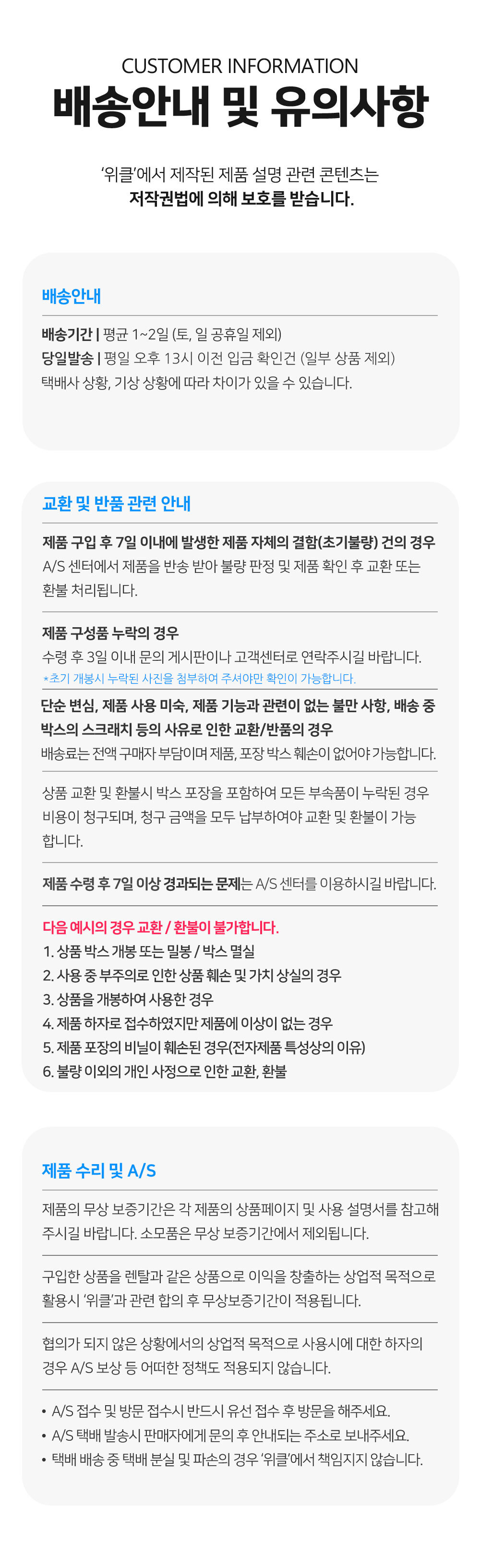 | 교환/반품 불가안내 |