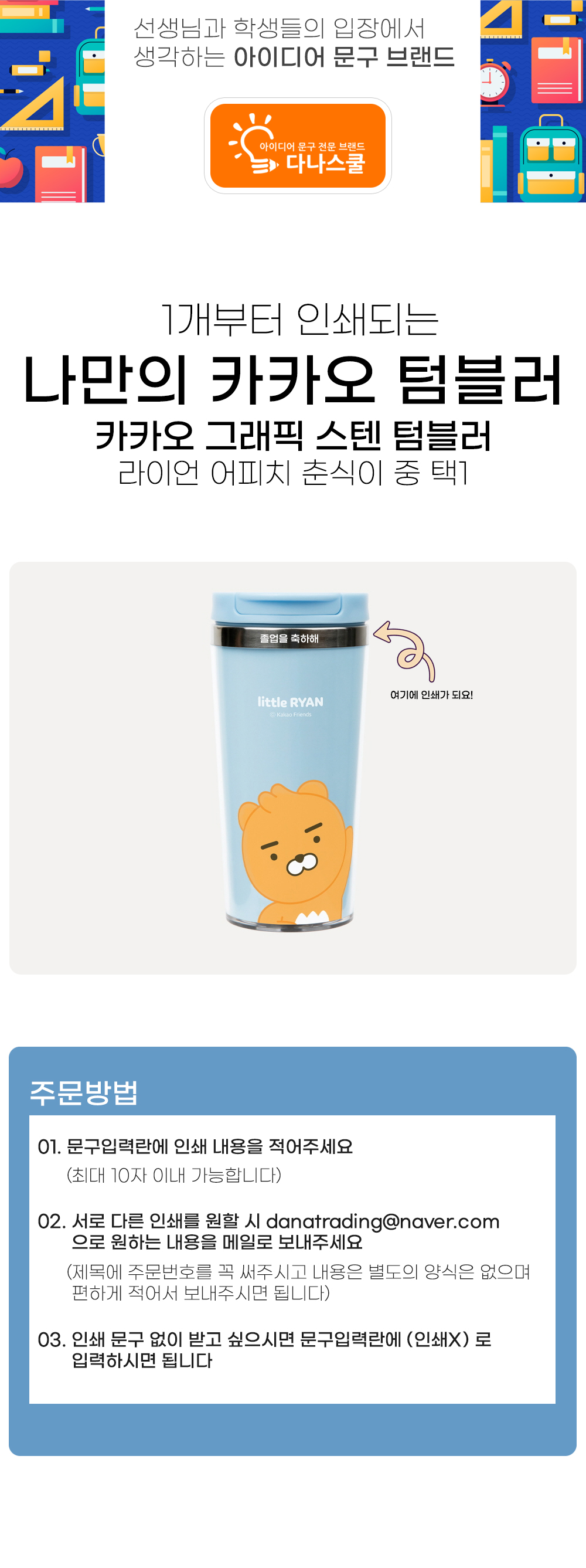 | 품명 및 모델명 | [카카오프렌즈] 1개부터 무료인쇄되는 - 카카오 그래픽 스텐 텀블러 라이언 어피치 춘식이 |