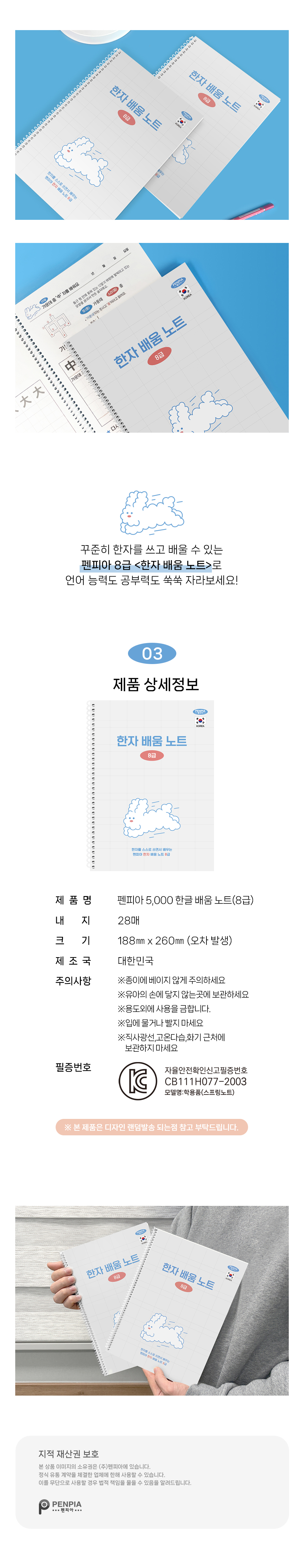 | 품명 및 모델명 | [펜피아] 8급 한자 배움노트 |