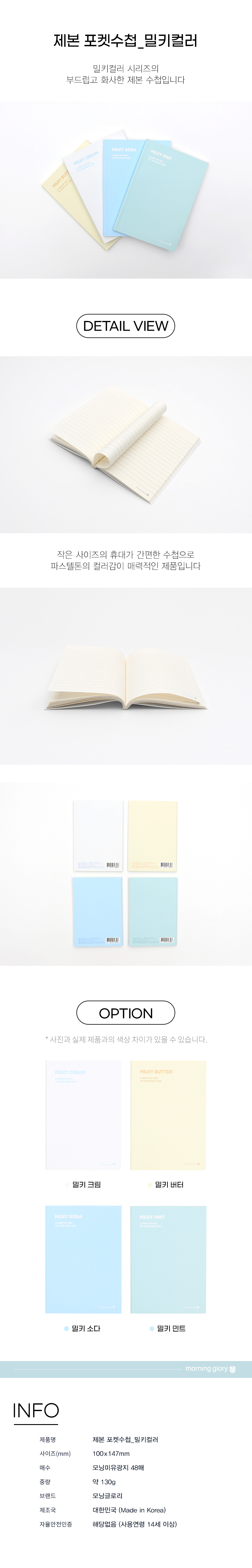 | 품명 및 모델명 | 제본 포켓수첩 밀키컬러 |