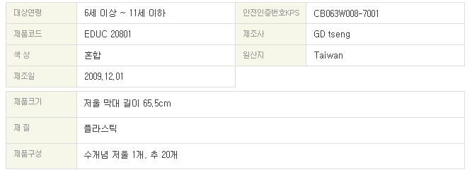 | 사용연령 또는 권장사용연령 | 6세 이상 |