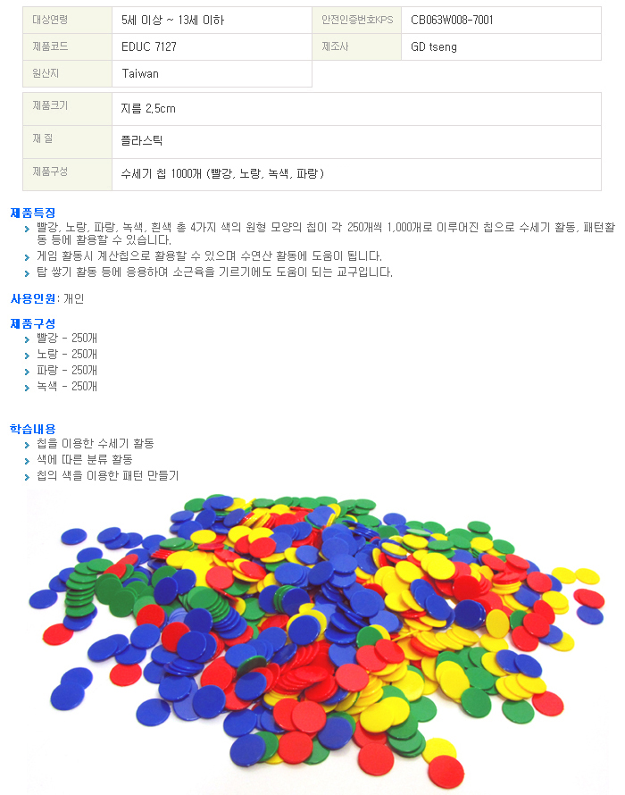 | 취급방법 및 취급시 주의사항, 안전표시 (주의, 경고 등) | 작은 조각은 삼키거나 목에 걸릴 수 있으니 3세 이하 어린이들 사용을 금합니다. |