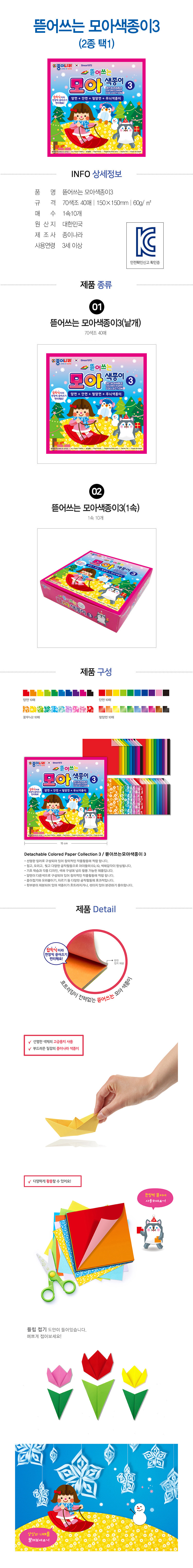 | 구성 | 2000 뜯어쓰는 모아색종이3 / 50매입 낱개 또는 1갑10속(옵션선택) |
