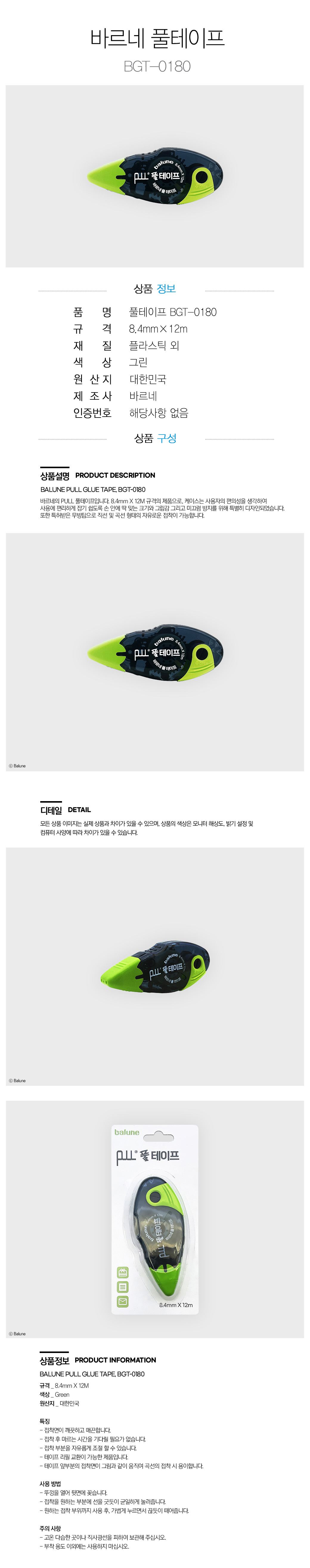 | 품명 및 모델명 | [바르네] 풀 테이프 BGT-0180 |