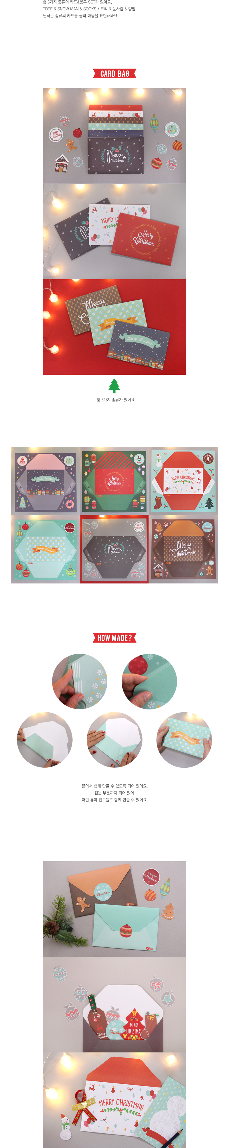 | 구성 | 미니산타모자10개, 미니레드뿅뿅이10개, 레드레이스리본1마반, 비비드스타스팡클, 초록트리스팡클, 크리스마스 봉투10개, 스노우맨 카드10장 |