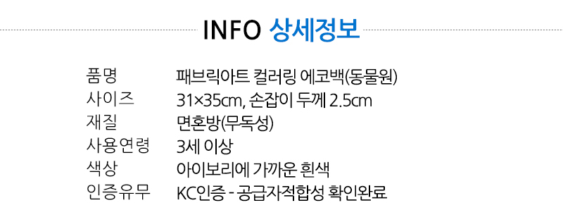 | 품명 및 모델명 | [아이스크림] 패브릭아트 컬러링 에코백(동물원) |