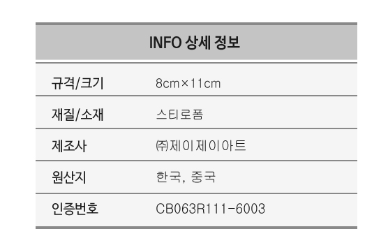 | 재질 (섬유의 경우 혼용률) | 클레이/스티로폼 |