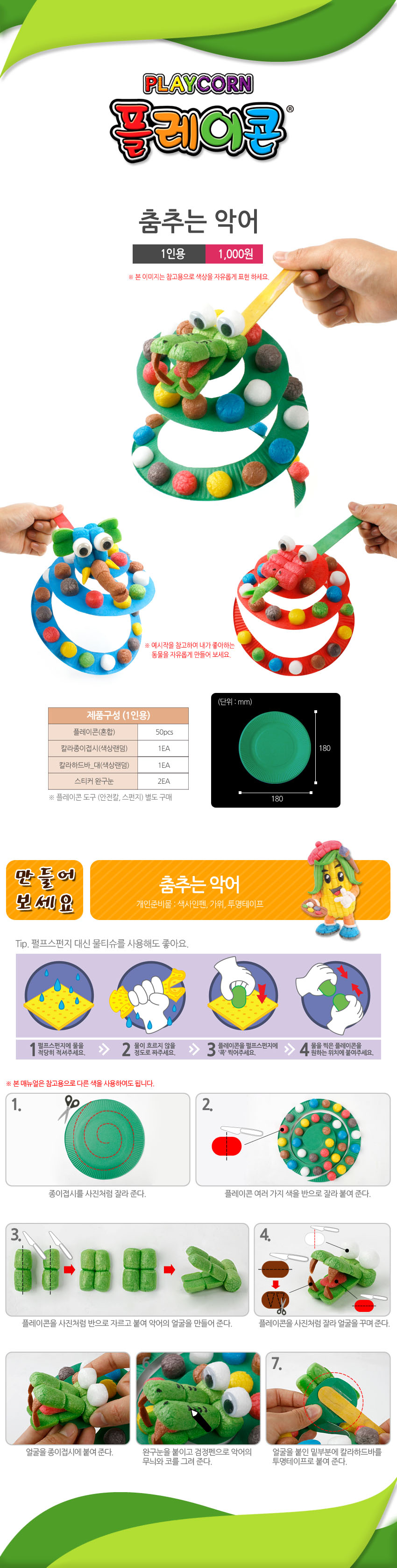 | 재질 (섬유의 경우 혼용률) | 옥수수전분,식용색소 |