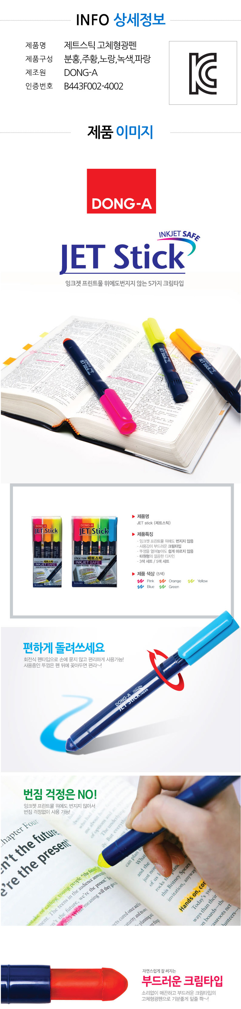 | 품명 및 모델명 | [동아] 제트스틱 고체형광펜 5색 |