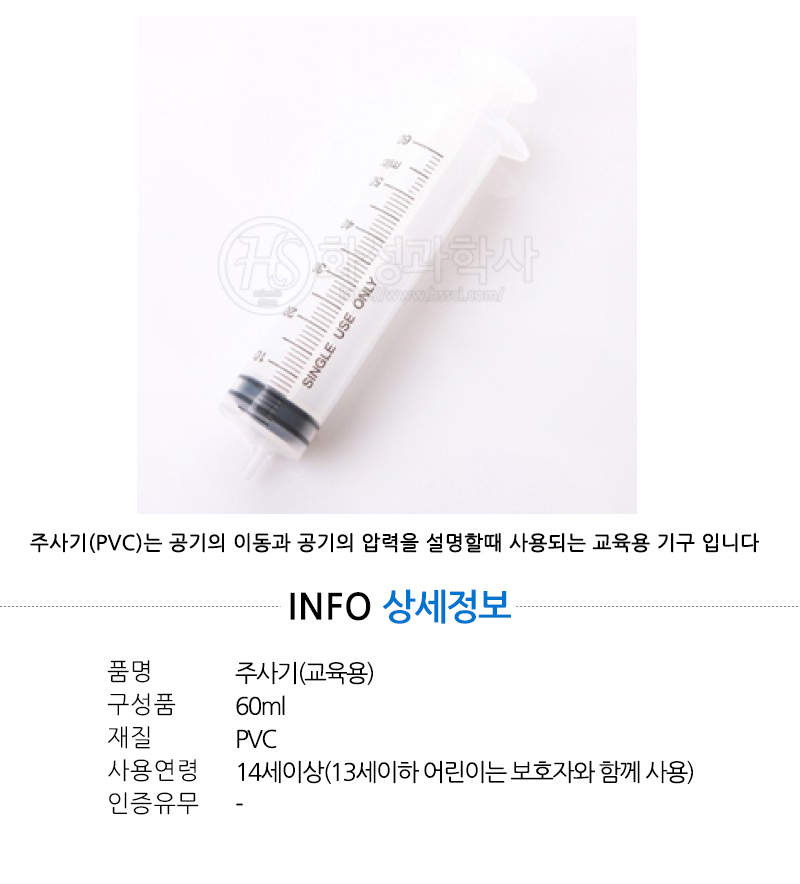 | 품명 및 모델명 | 주사기(pvc)(교육용)60ml |