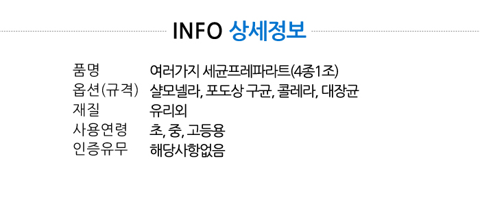 | 품명 및 모델명 | [와니사이언스] 여러가지세균 프레파라트(4종1조) |