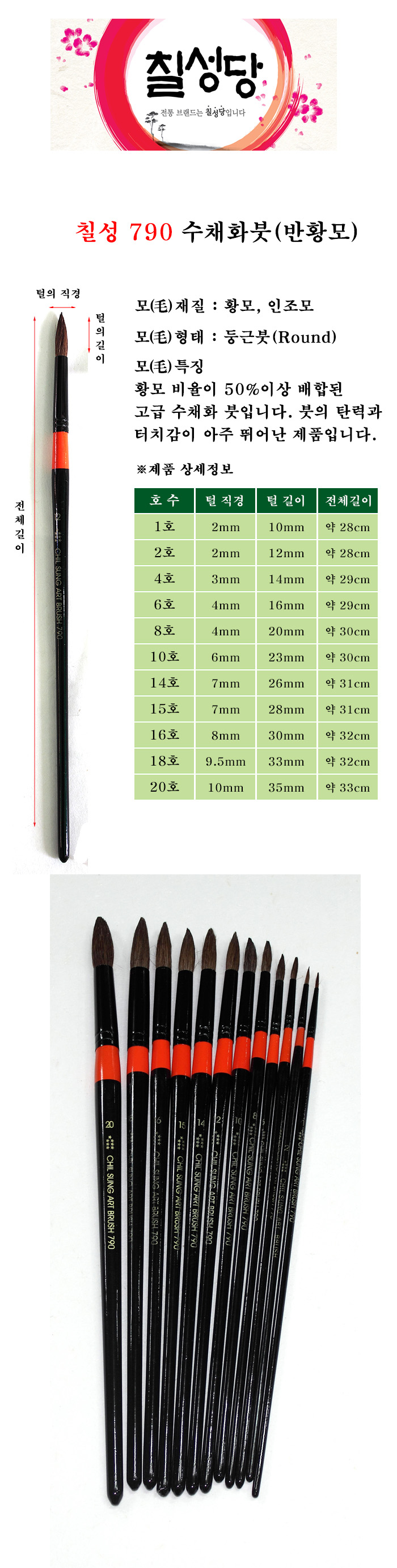 | 품명 및 모델명 | [칠성당] 코메트 790 반황모 수채화붓(둥근붓) 1~20호 (제품선택) |