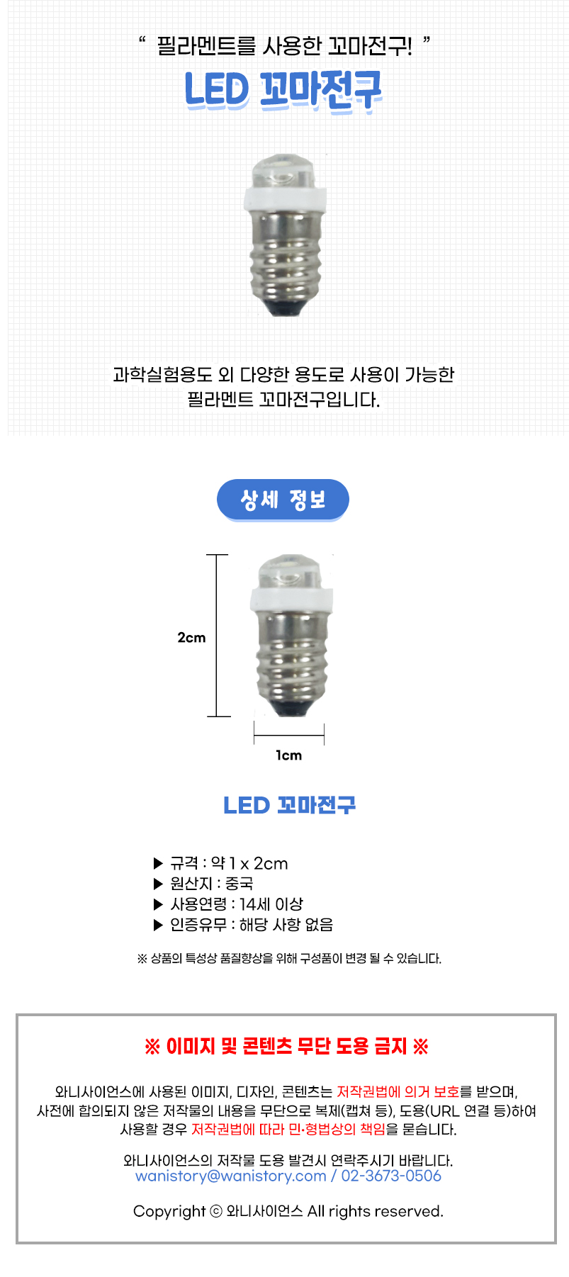 | 품명 및 모델명 | [와니사이언스] LED 꼬마전구(10개입, 1.5V,3V 선택사항) |