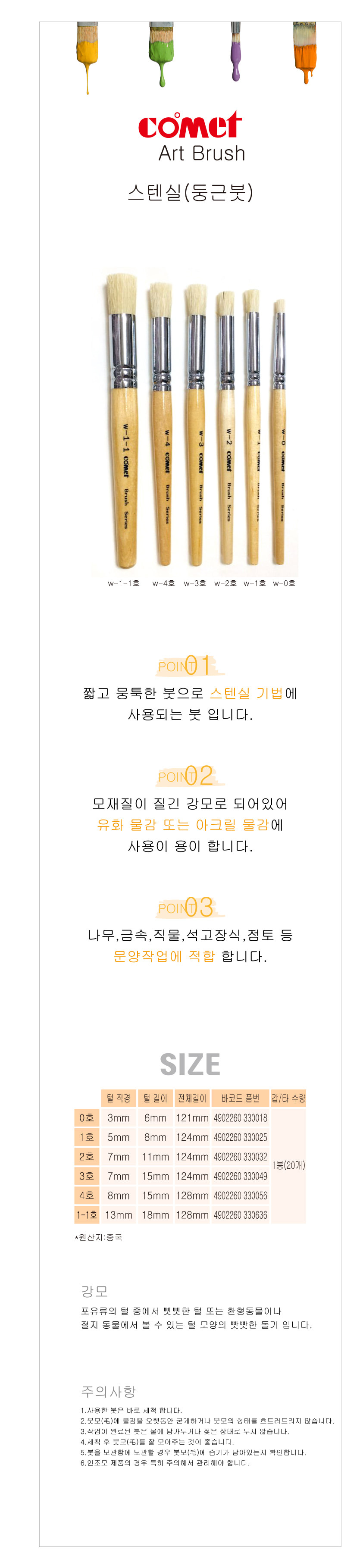 | 품명 및 모델명 | [코메트] 스텐실 붓 W0~4호 |