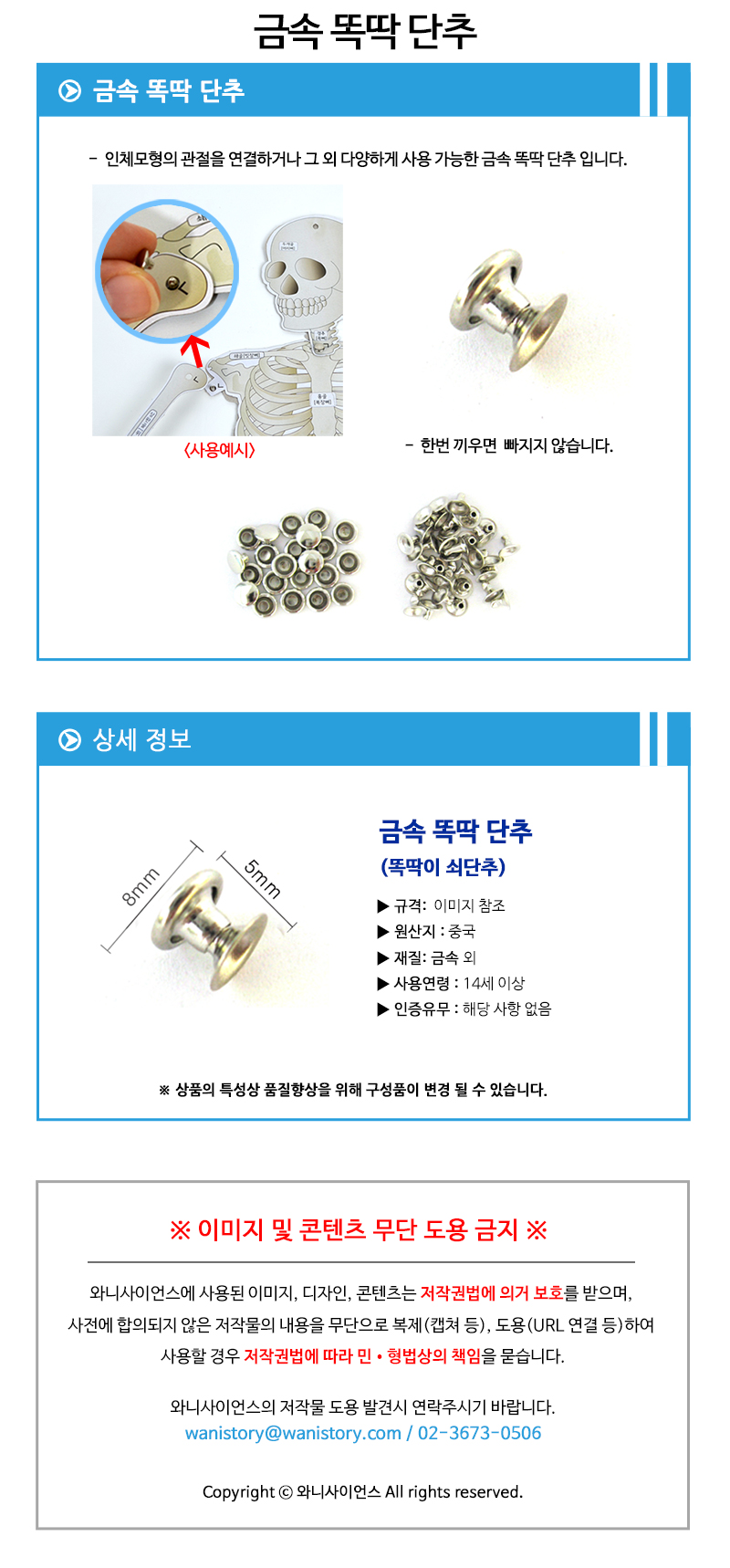 | 품명 및 모델명 | [와니사이언스] 금속똑딱단추(1000개입) |