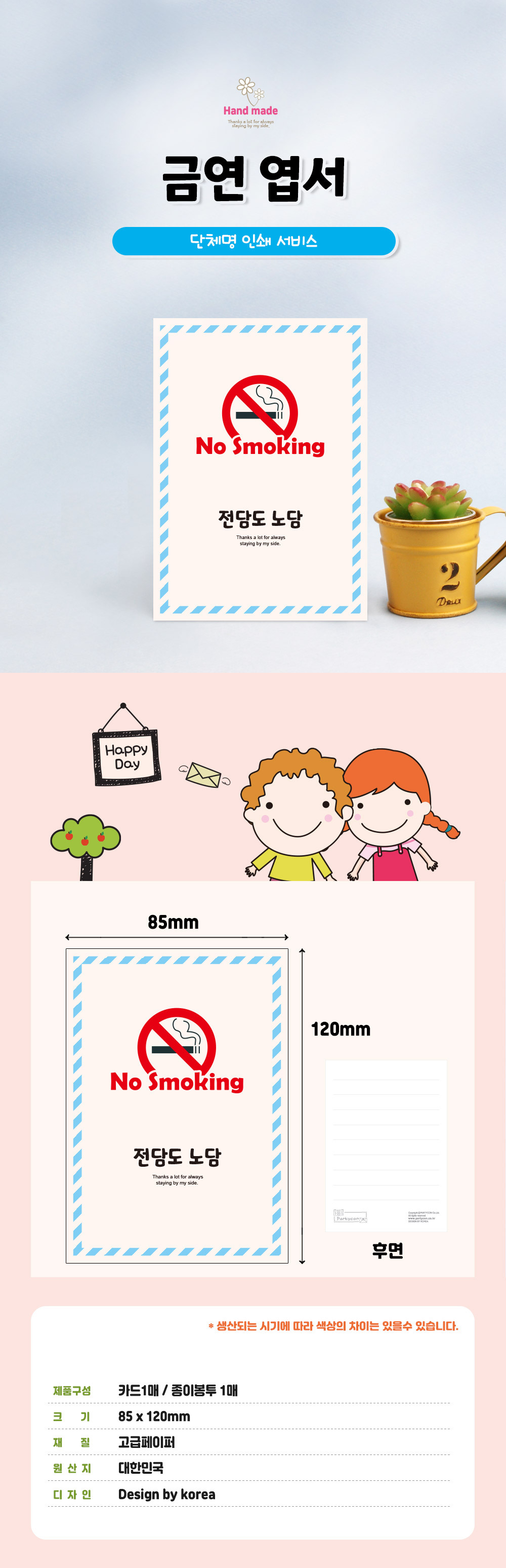 | 품명 및 모델명 | [파티콘] 흡연예방엽서 (1장부터 주문제작) |