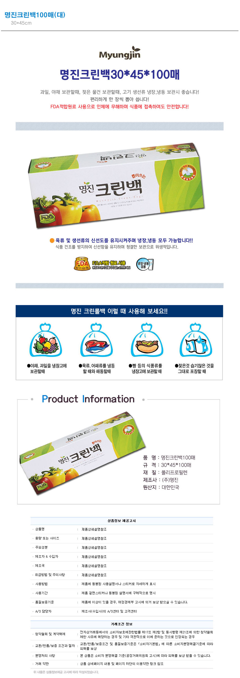 • [명진] 명진크린백(대) 100매(30*45cm) 상품번호 : 214948