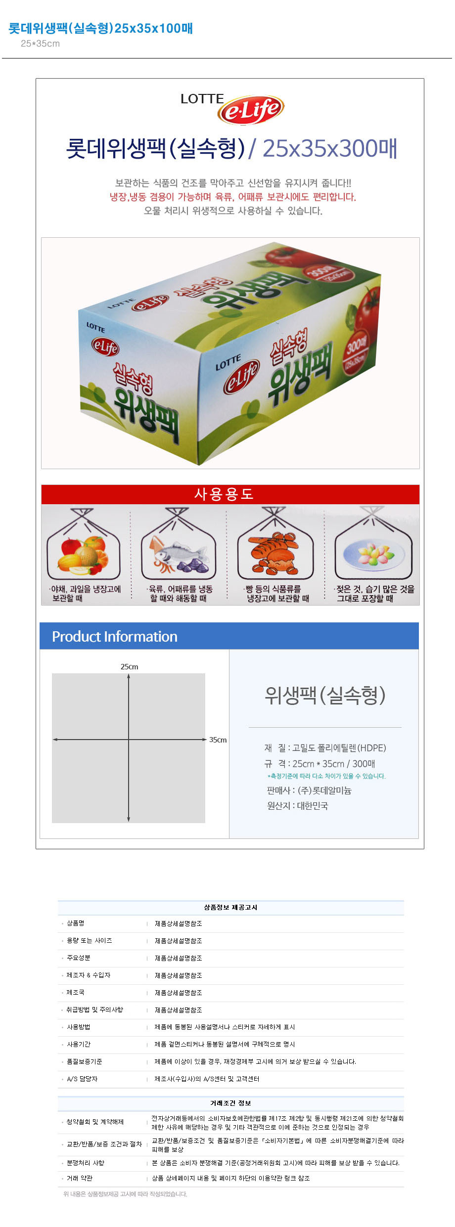 • [롯데] 롯데위생팩(실속형) 100매(25*35cm) 상품번호 : 214987