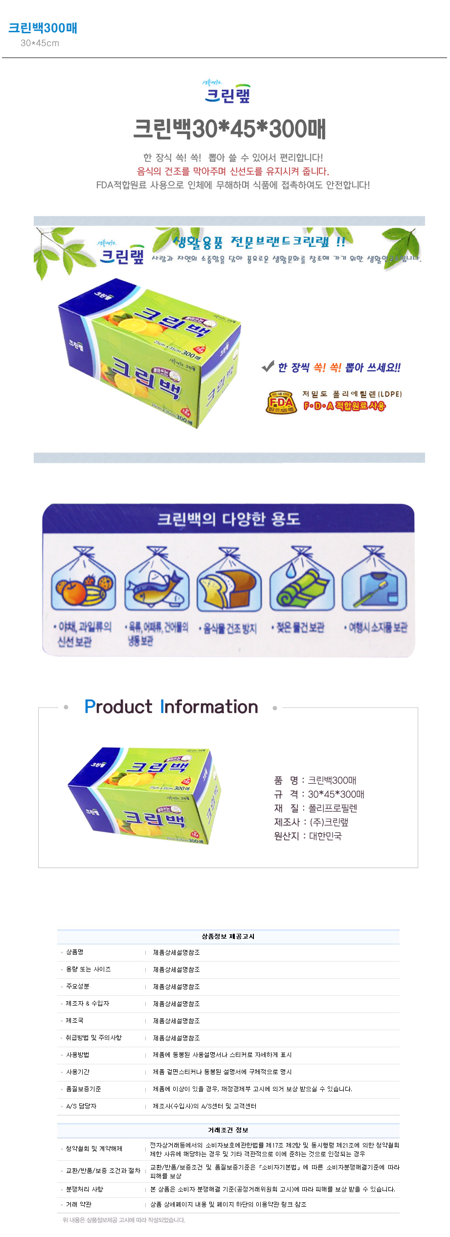 • [크린랲] 크린백 300매(30*45cm) 상품번호 : 215057