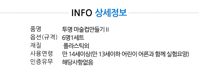| 품명 및 모델명 | [와니사이언스] 투명 마술컵만들기2(6명 세트) WN-2061 |