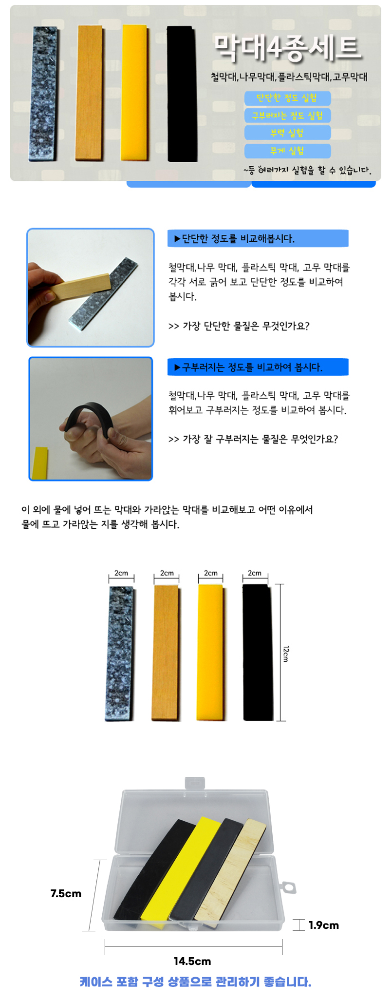 | 품명 및 모델명 | [와니사이언스] 여러 가지 막대(4종, 케이스입)(2* 12cm, 두께5mm) |