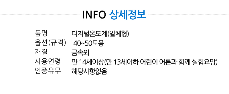 | 품명 및 모델명 | [와니사이언스] 디지털온도계(일체형)(-40~150도) WN-590 |