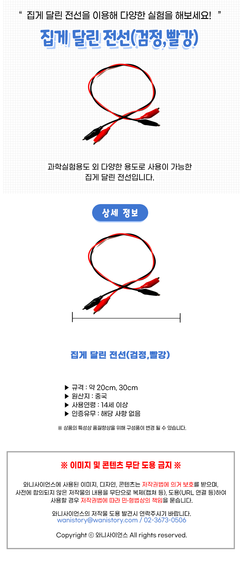 | 품명 및 모델명 | [와니사이언스] 집게 달린 전선(검정, 빨강5개 1조) |