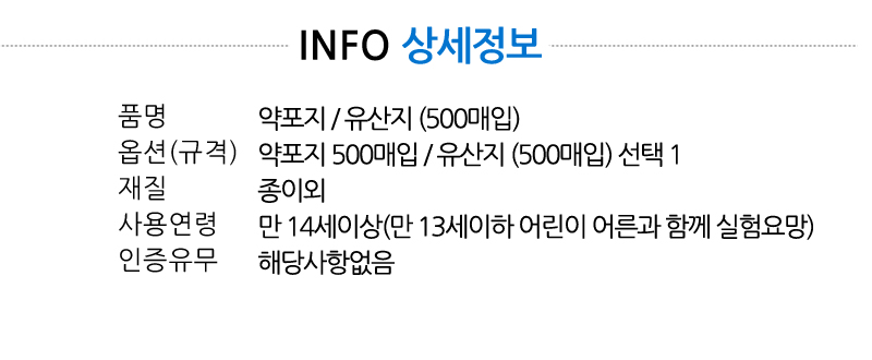 | 품명 및 모델명 | [와니사이언스] 약포지/유산지(500매입)(선택사항) |