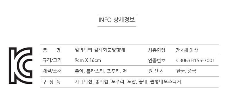 | 품명 및 모델명 | 엄마아빠 감사화분방향제 |