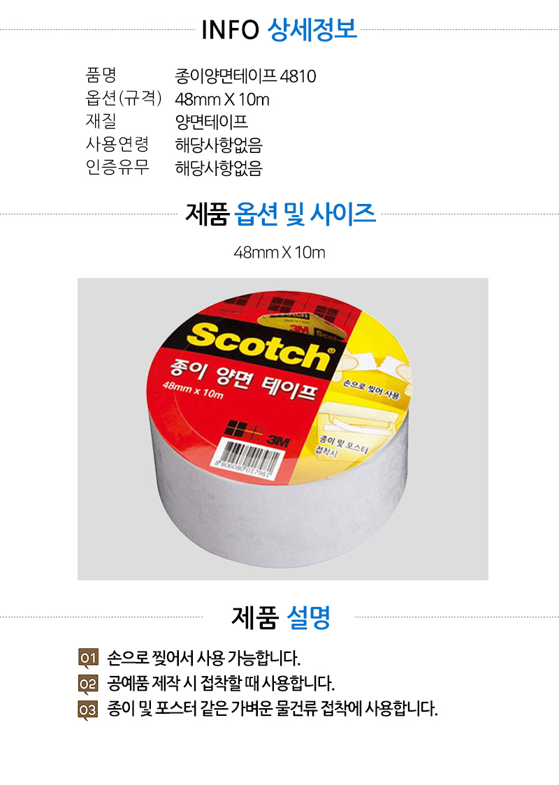 | 품명 및 모델명 | 종이양면테이프 4810 |