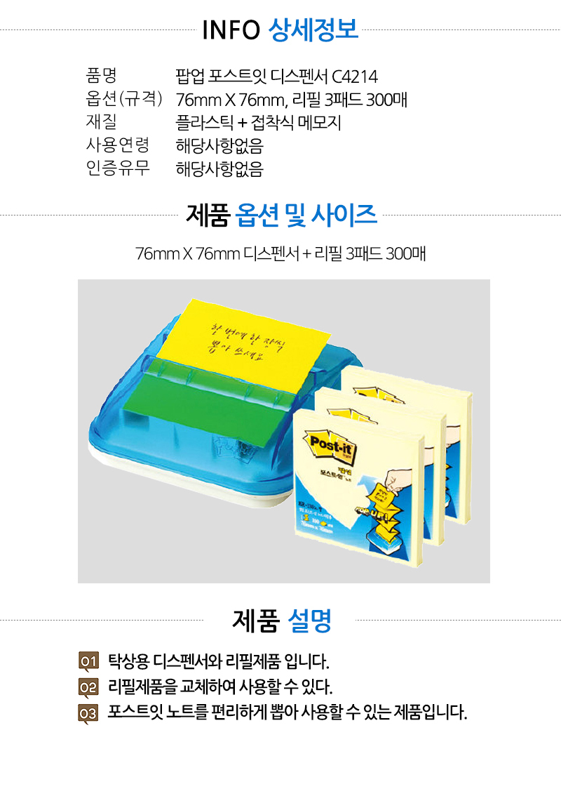 | 구성 | 디스펜서 1개 + 리필100매 3개 |
