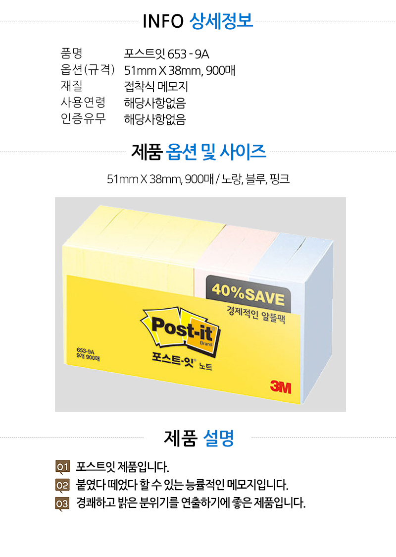 | 품명 및 모델명 | 포스트잇 653-9A |