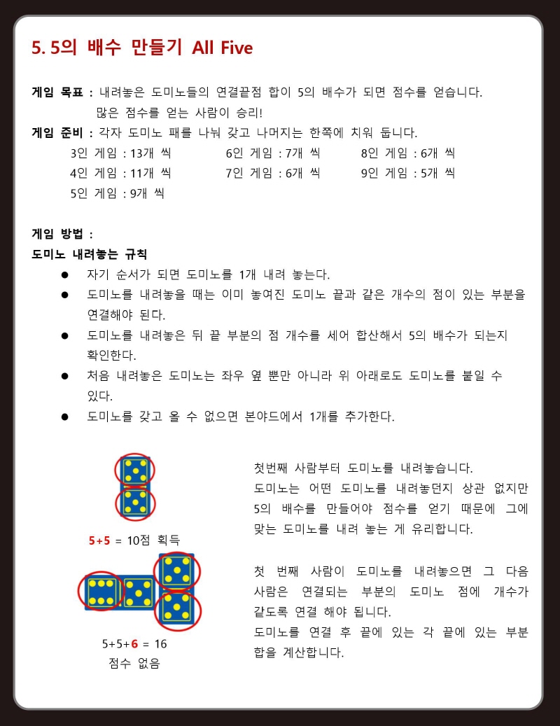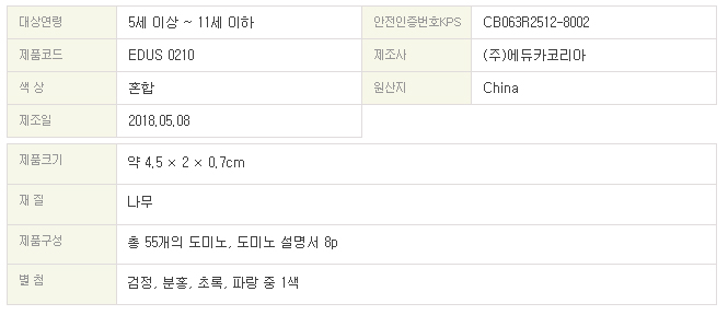 | 품명 및 모델명 | 9점 도미노 (1세트 - 55개) |