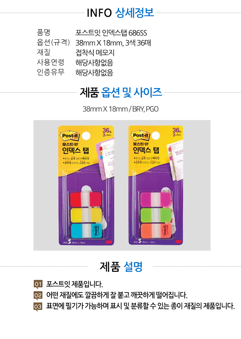 | 품명 및 모델명 | 포스트잇 인덱스탭 686SS |