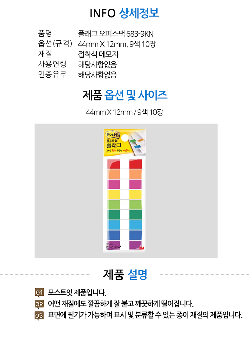 | 품명 및 모델명 | 포스트잇 플래그 오피스팩 683-9KN |