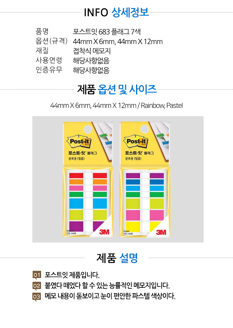 | 품명 및 모델명 | 포스트잇 683 플래그 7색 |
