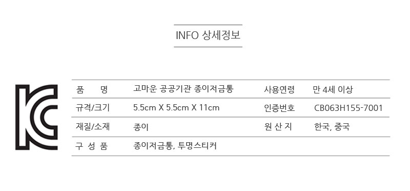 | 품명 및 모델명 | 고마운 공공기관 종이저금통(3개세트) |