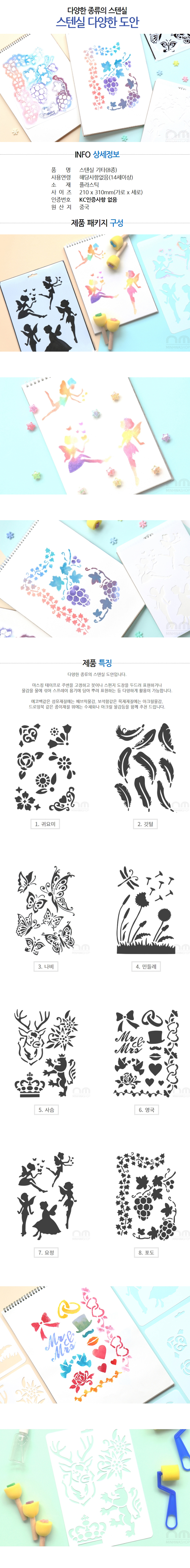 | 품명 및 모델명 | [민화샵] 스텐실 8종류 다양한 도안 |