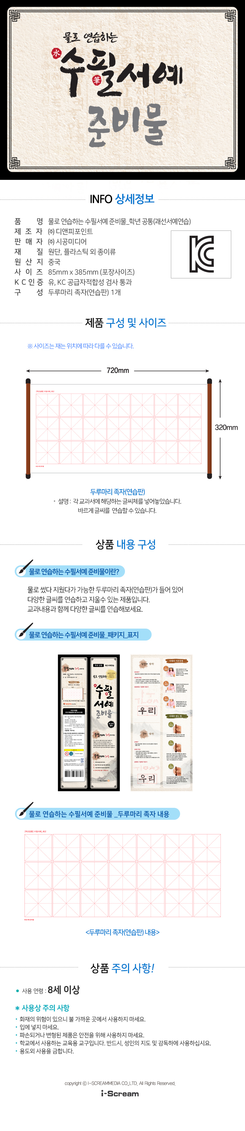 | 품명 및 모델명 | [아이스크림] 물로 연습하는 수필서예 준비물(괘선_공통) |