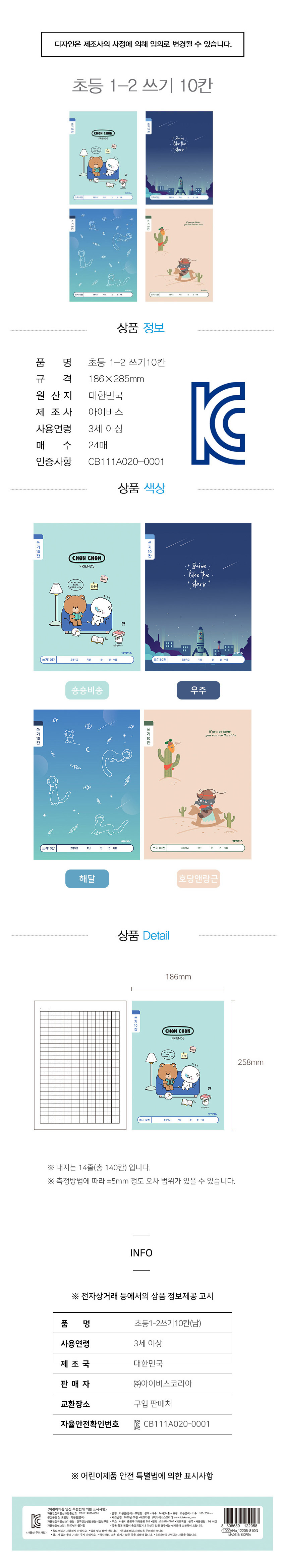 | 품명 및 모델명 | 초등 1-2 쓰기 10칸 |