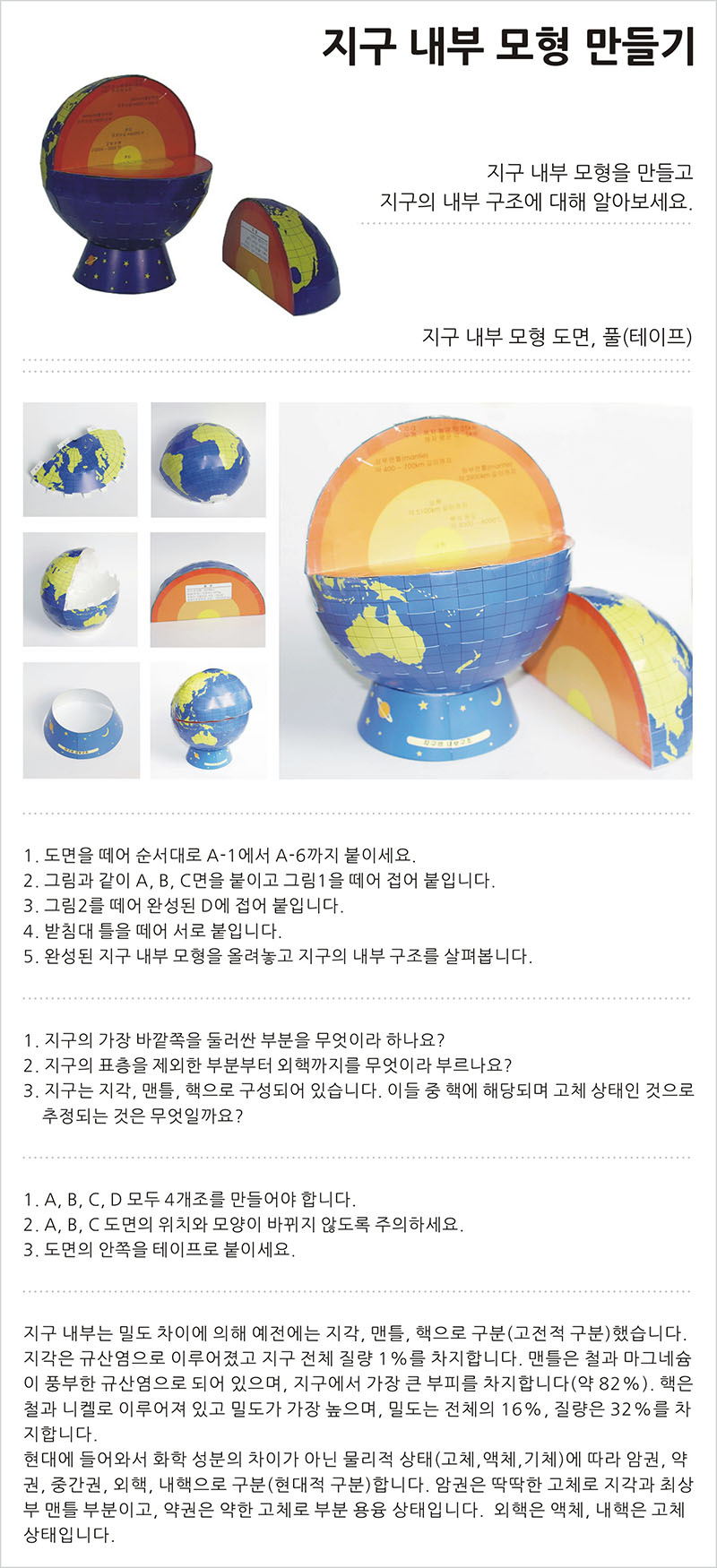 | 품명 및 모델명 | 지구내부모형 만들기 ms0222 |