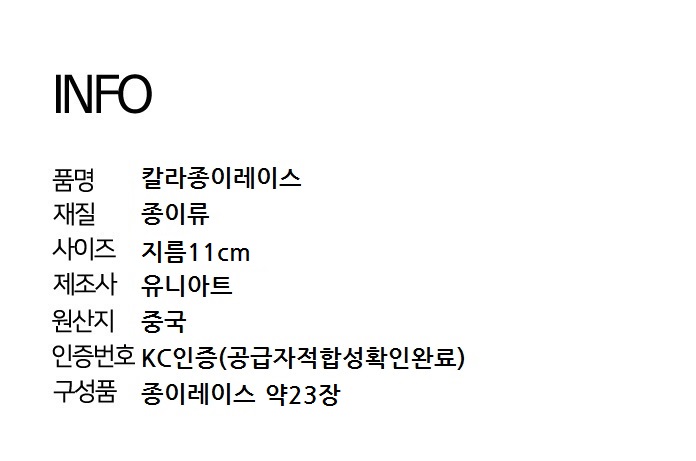 | 품명 및 모델명 | [유니아트] 칼라종이레이스(소,11cm,약23장) |