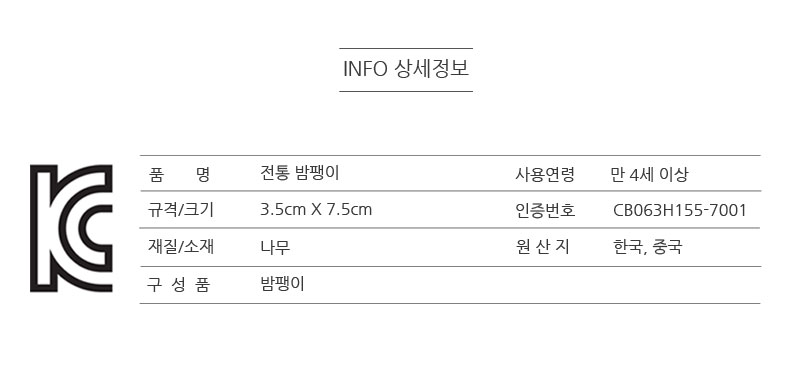 | 품명 및 모델명 | 전통 밤팽이(5인용) |