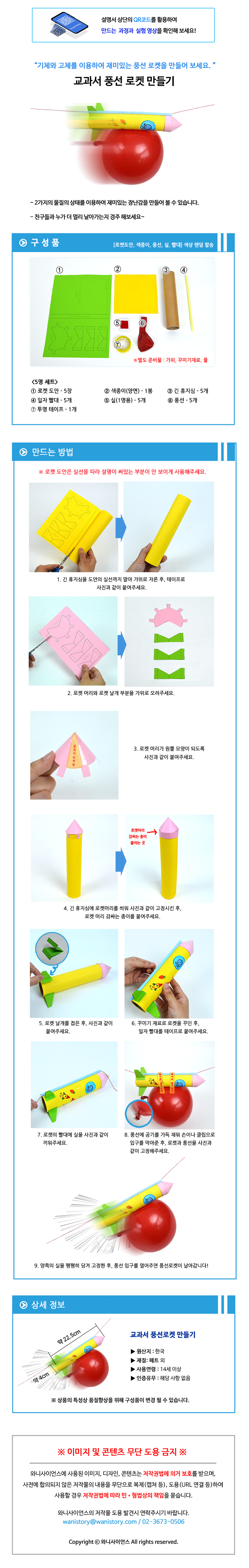 | 품명 및 모델명 | [와니사이언스] 교과서 풍선로켓만들기(5명 세트) |