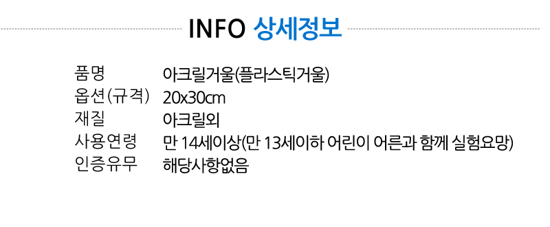 | 품명 및 모델명 | [와니사이언스] 아크릴거울(20x30cm) WN-1207 |
