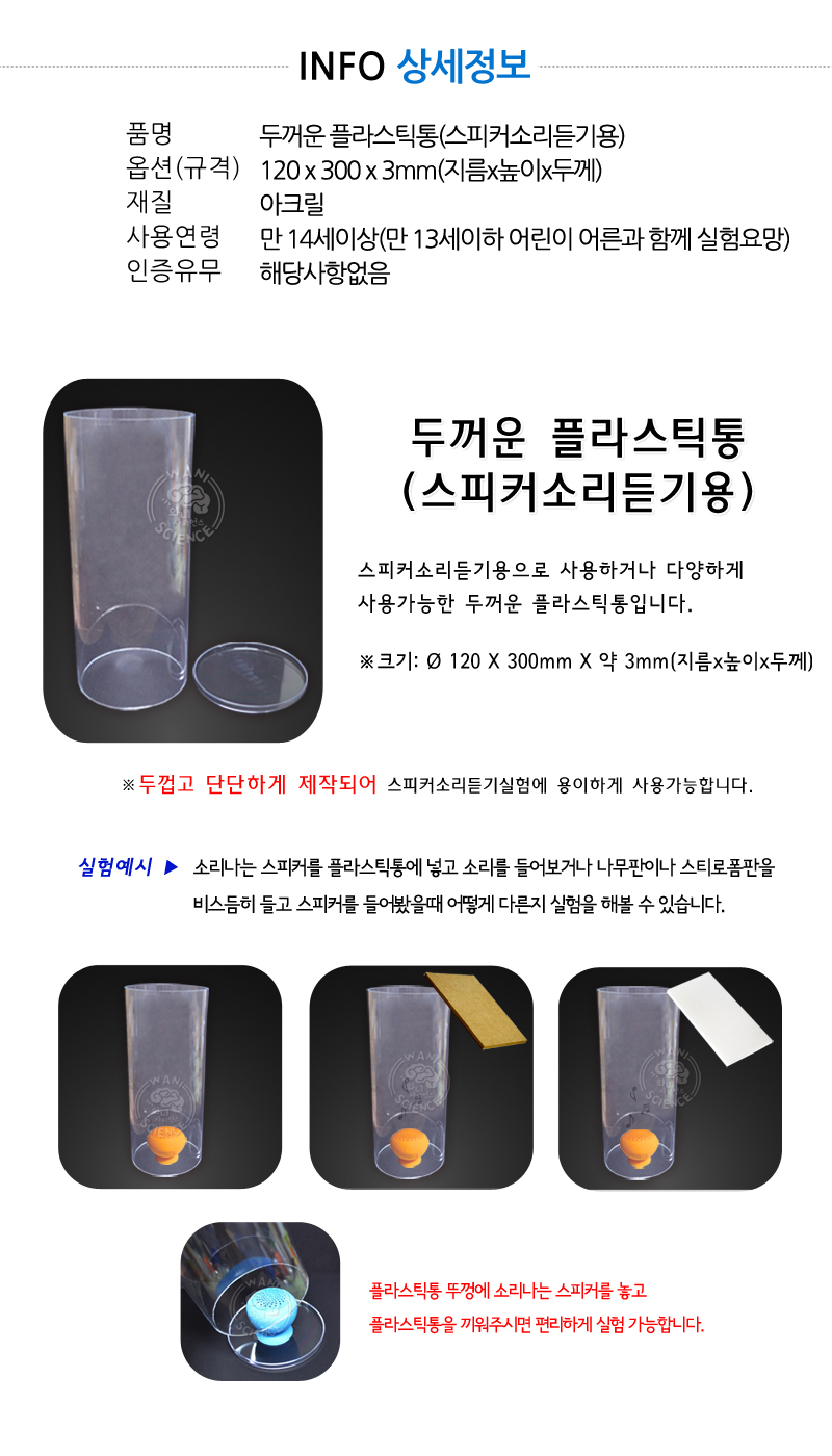 | 품명 및 모델명 | [와니사이언스] 두꺼운 플라스틱통(스피커소리듣기용) WN-5087 |