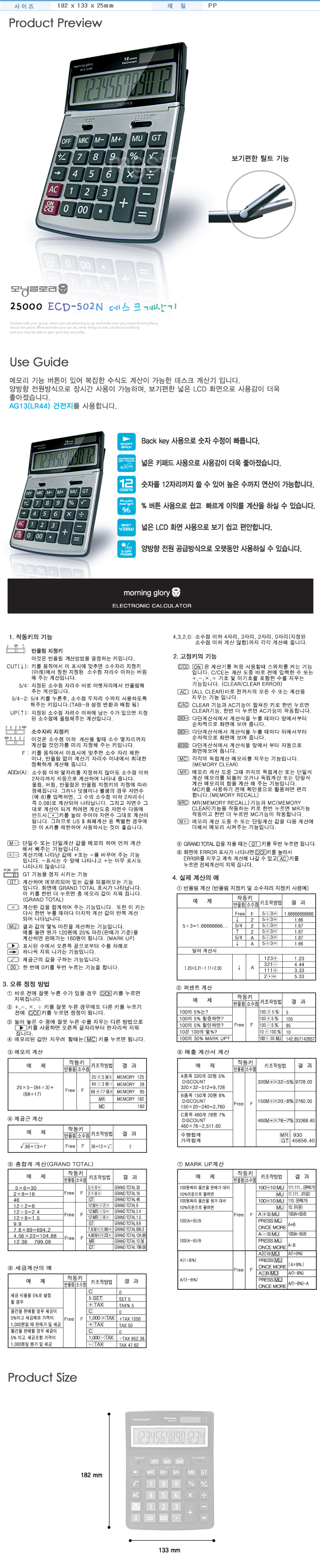 | 품명 및 모델명 | [모닝글로리] 25000 데스크계산기 |