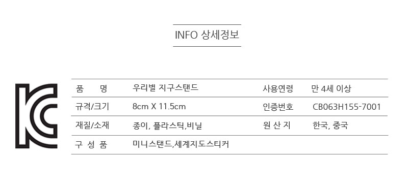 | 품명 및 모델명 | 우리별 지구스탠드 |
