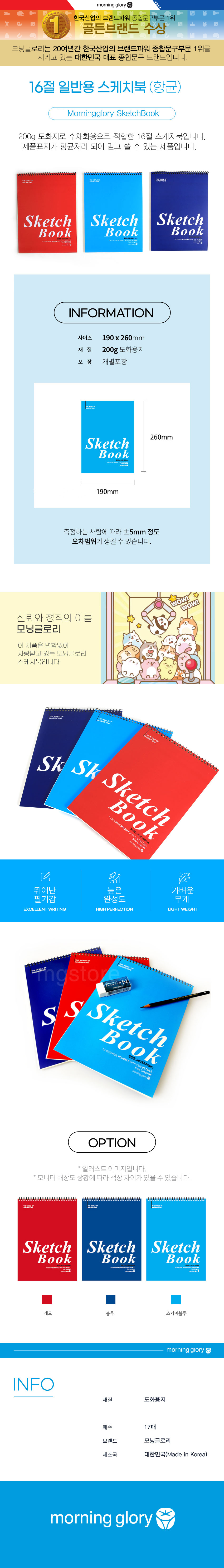 | 품명 및 모델명 | [모닝글로리] 16 절 일반용 스케치북 |