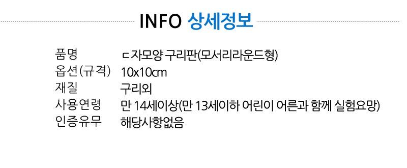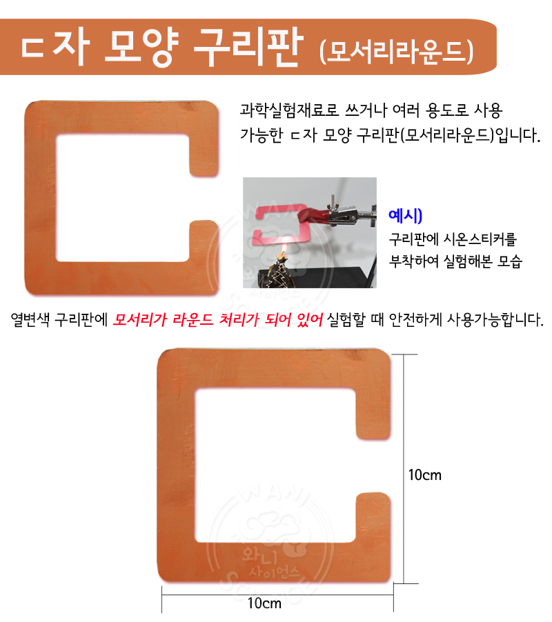 | 품명 및 모델명 | [와니사이언스]ㄷ자모양 구리판(모서리 라운드)(10*10cm, 두께0.2mm) |